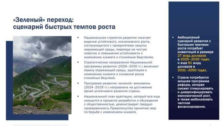 Кыргызстану предстоит масштабная трансформация, требующая значительных финансовых вложений – до 61 миллиарда долларов США – для реализации амбициозных целей по «зелёному» переходу и ускоренному экономическому росту. Об этом сообщила старший экономист Всемирного банка Елена Голуб в рамках презентации Странового доклада по климату и развитию Кыргызской Республики, предоставляя ключевые данные для потенциальных инвесторов.